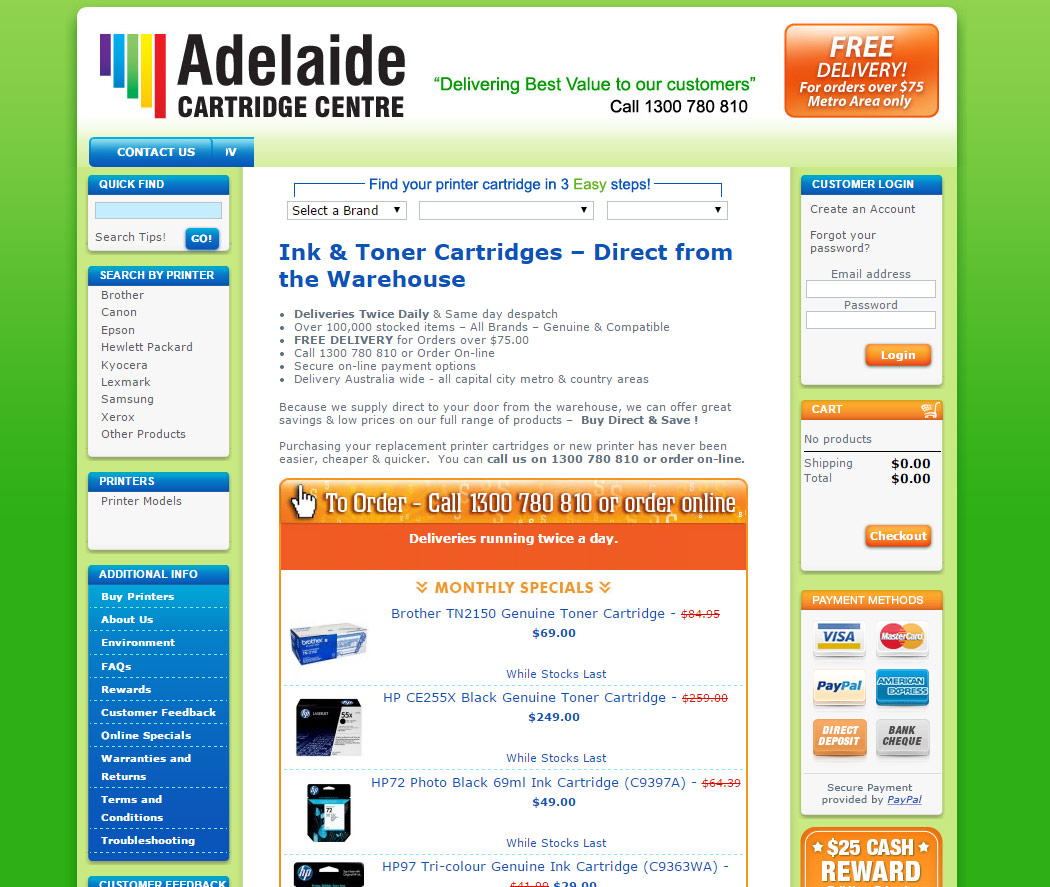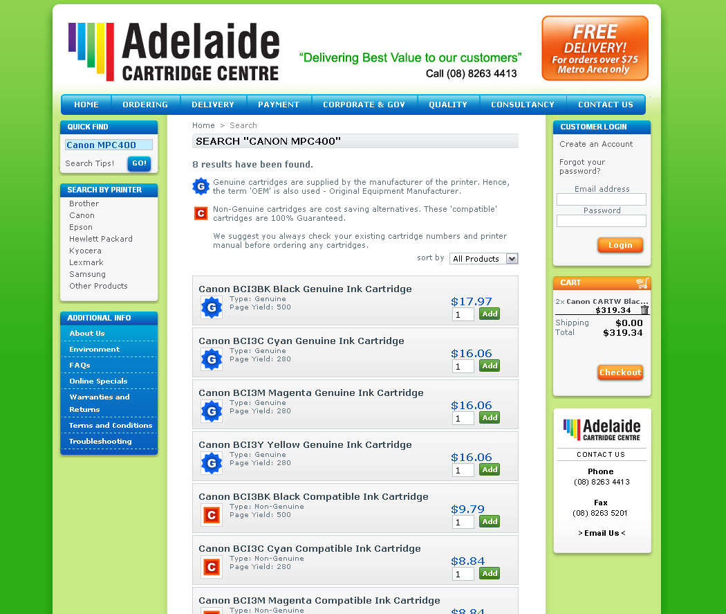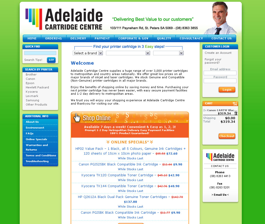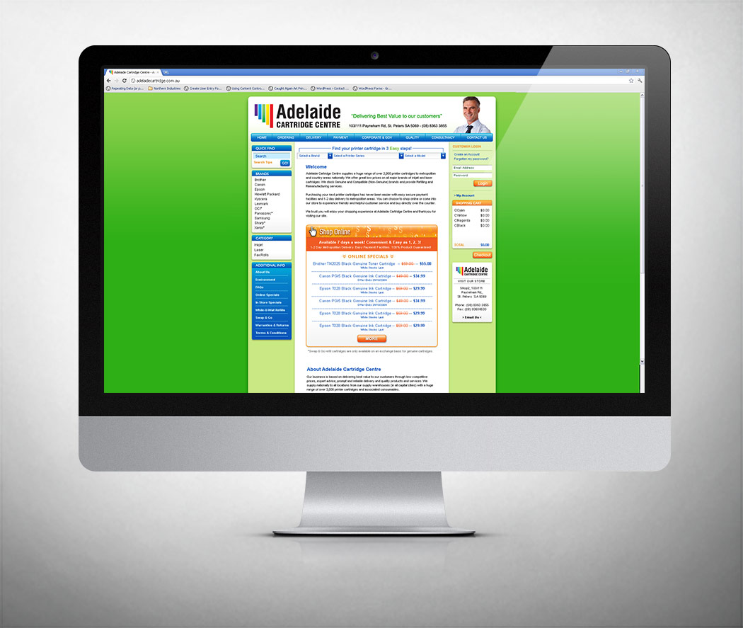 Adelaide Cartridge Centre needed a new website that would successfully integrate the use of an online shopping cart.